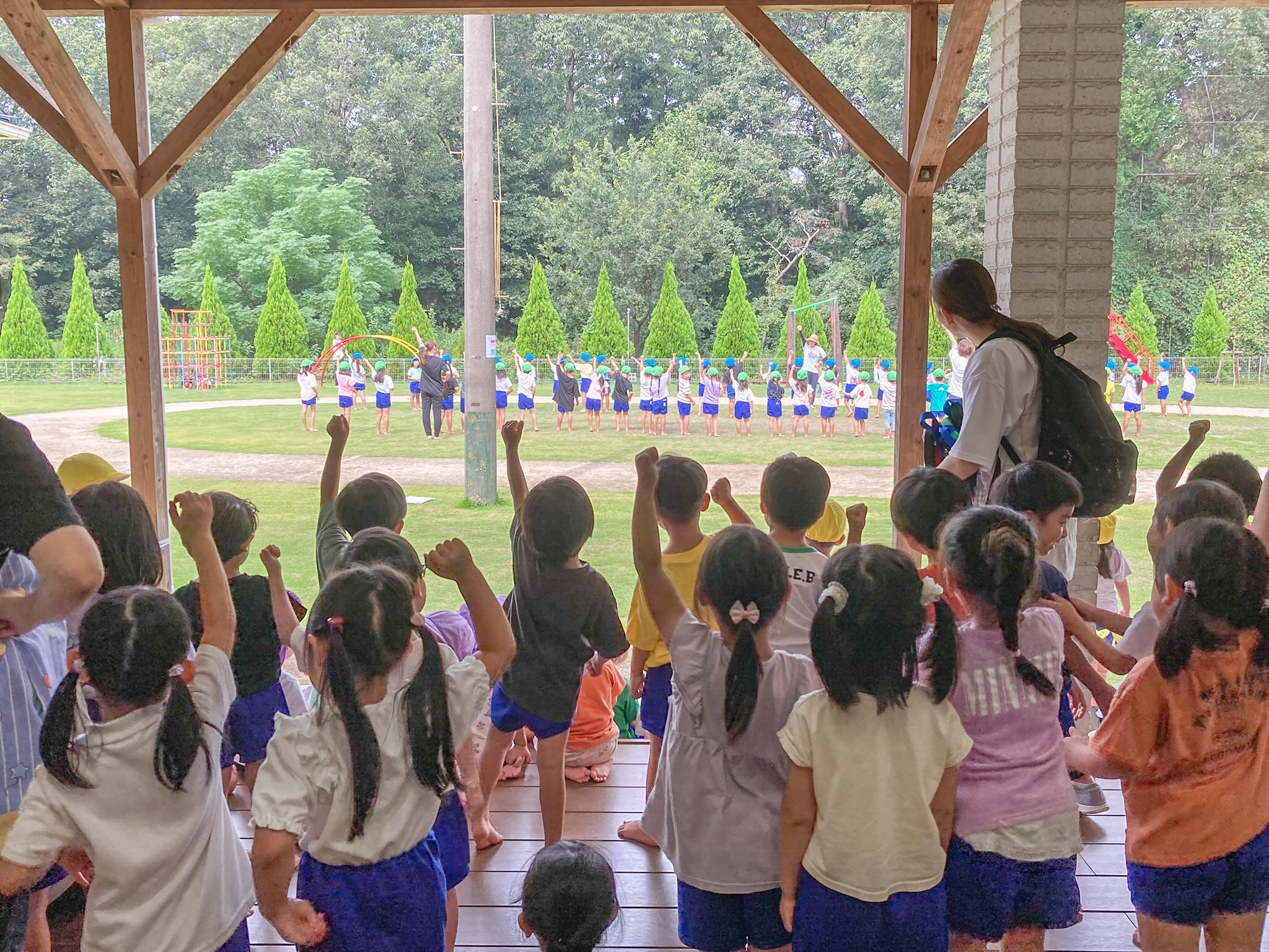 子どもたちは広い公園で元気いっぱいに遊び、暑い日だったので水遊びも思い切り楽しんでいました🏊