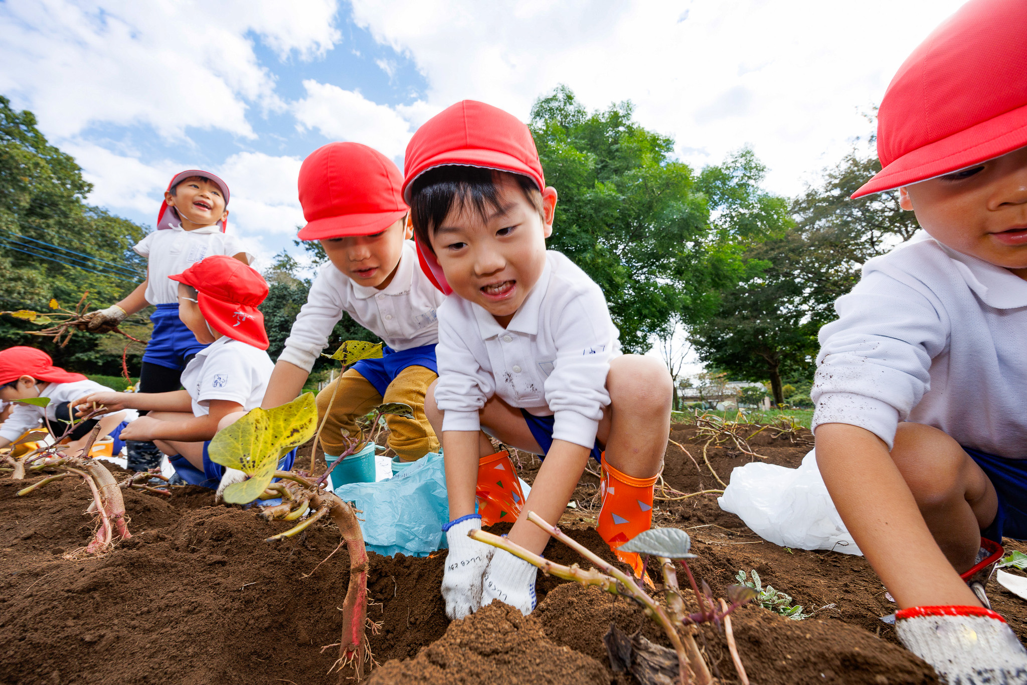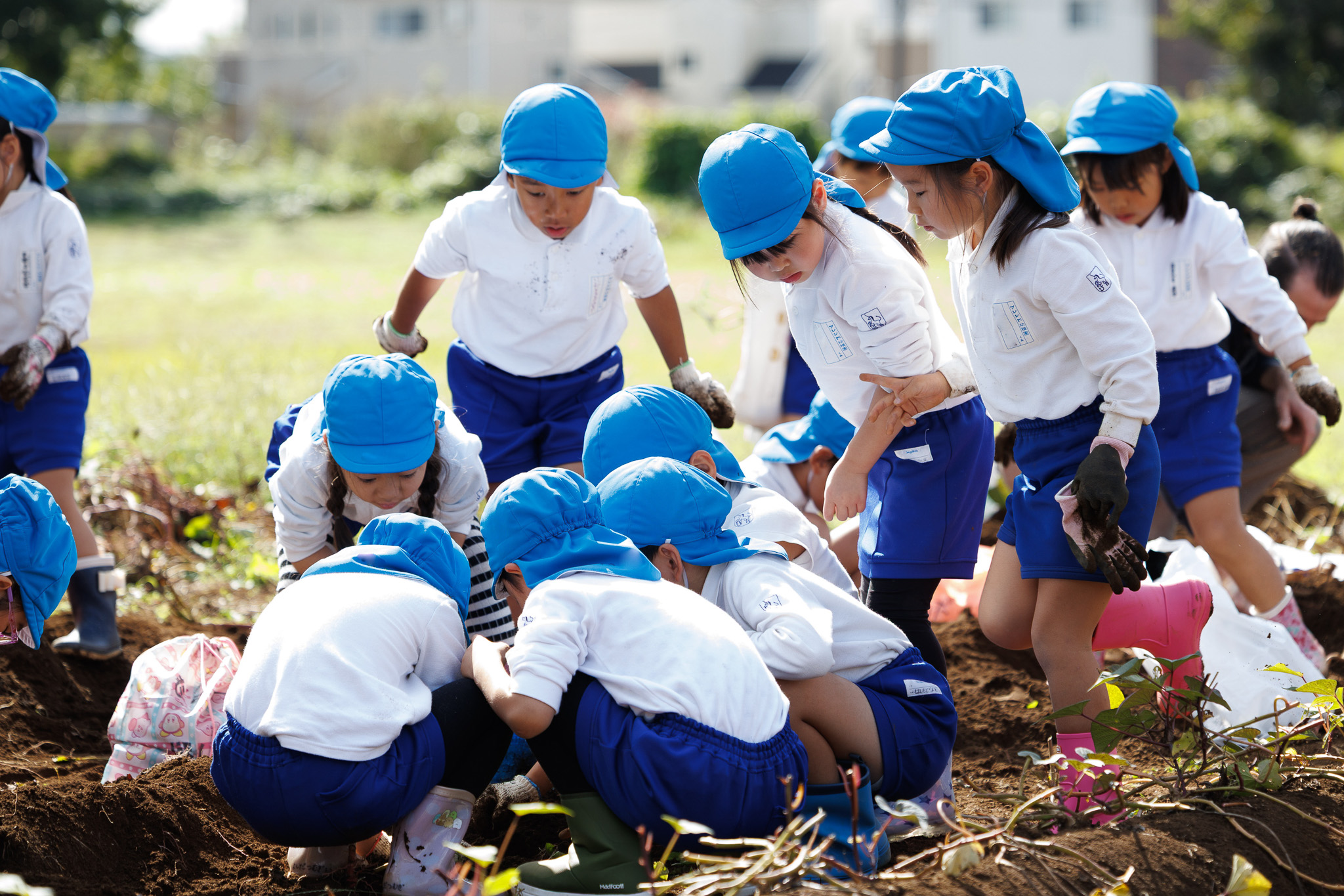 子どもたちは土を掘り起こしながら、大きな芋や小さな芋を見つけて大喜び!
